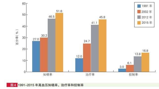 但是≥18岁成人高血压的知晓率、治疗率和控制率分别为51.6%、45.8%和16.8%(下图),其中女性均高于男性,城市居民均高于农村居民。
