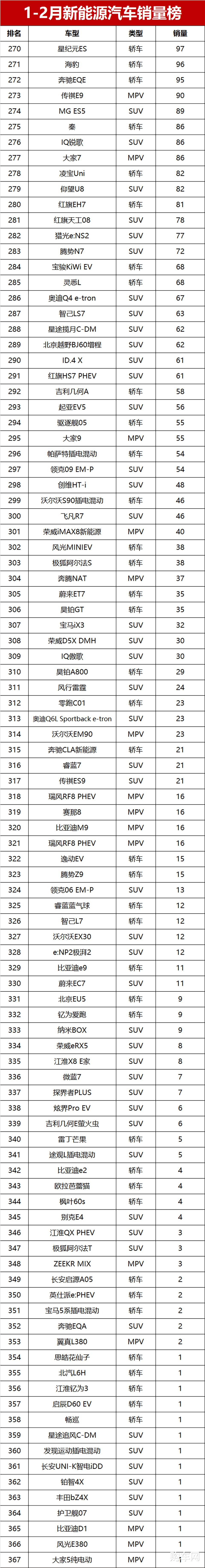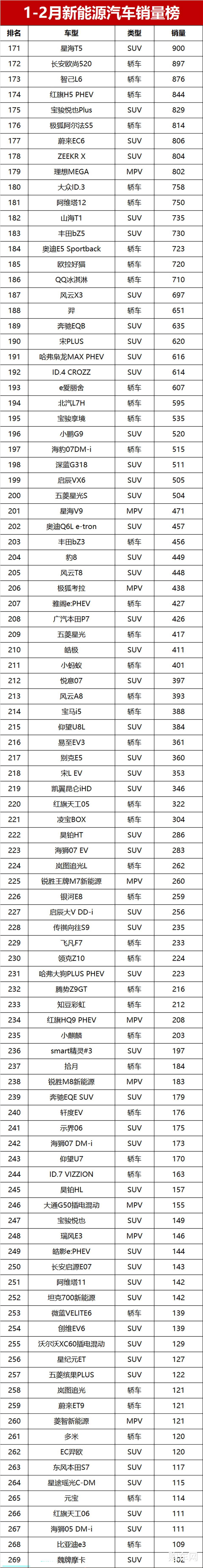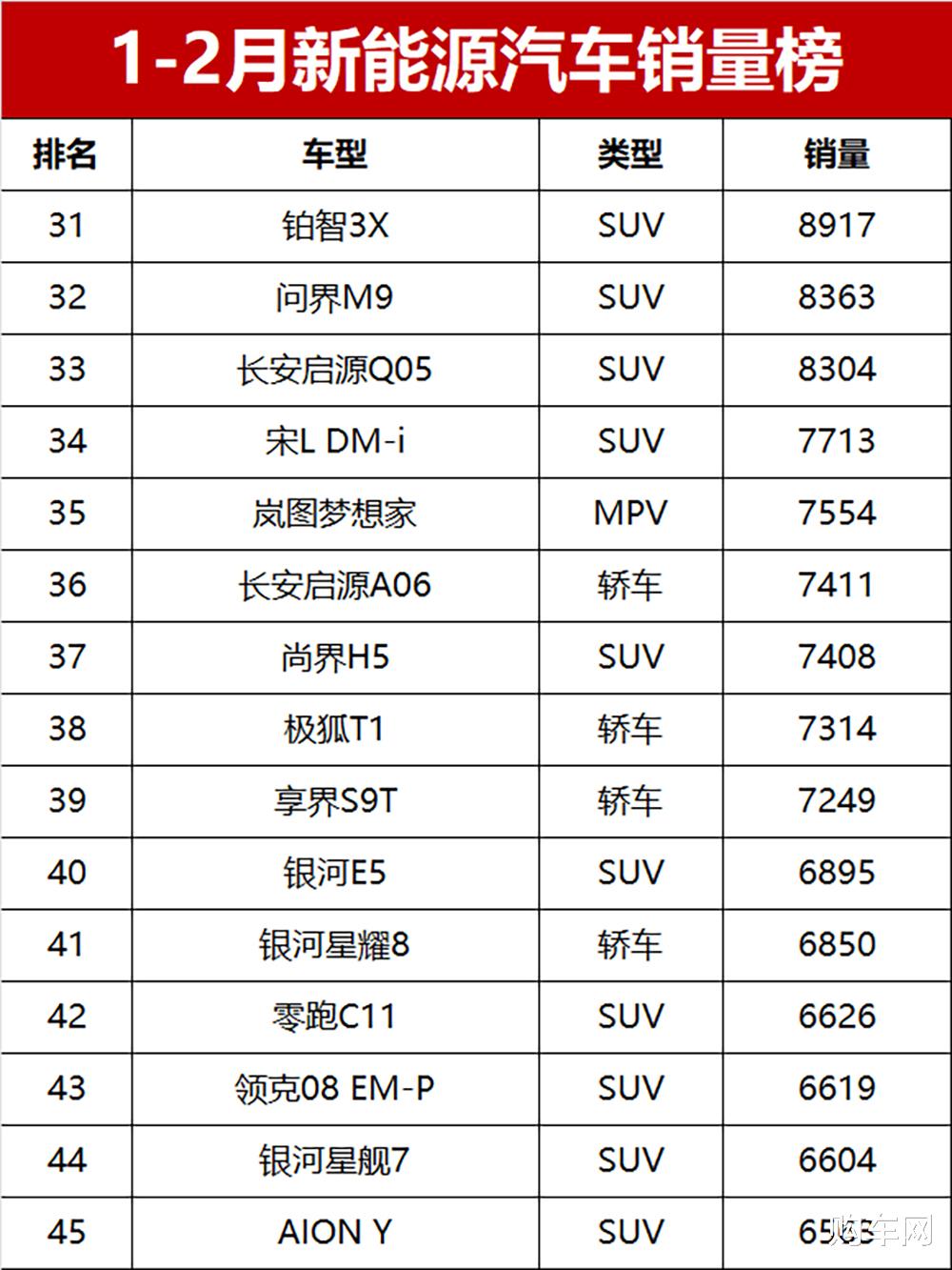 总体来看,2026年开年新能源市场表现疲软,头部车型集中,多数车型销量下滑,国产新能源品牌凭借丰富的车型矩阵占据主导地位,而合资和豪华品牌仍需发力。后续随着新品上市和市场政策调整,新能源市场能否回暖,值得我们持续关注。