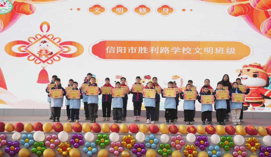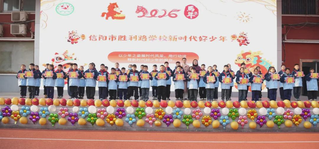 当2025年的最后一缕晨光洒满校园,崭新的2026年已悄然向我们走来。12月29日清晨,信阳市胜利路学校全体师生齐聚操场,隆重举行“辞旧迎新 砥砺前行”元旦主题升旗仪式暨学期颁奖仪式,全校师生共同回顾2025年的成长足迹,一起展望美好的未来。