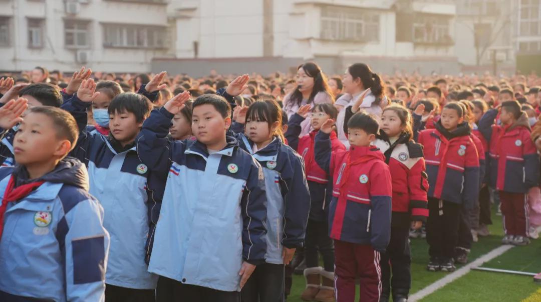 仪式在庄严的国歌声中拉开序幕。全体少先队员肃立行礼,注视五星红旗冉冉升起。国歌声铿锵,红旗飘扬,为新的一年注入第一抹庄重与希望的色调。