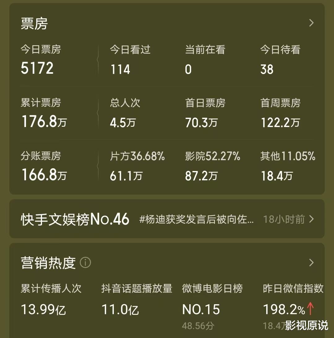 可就是这样一部票房很低口碑很差的烂片,在今年十月中上旬的热度却非常高。它的观众传播人次将近14亿,某音话题播放量也达到了11亿。