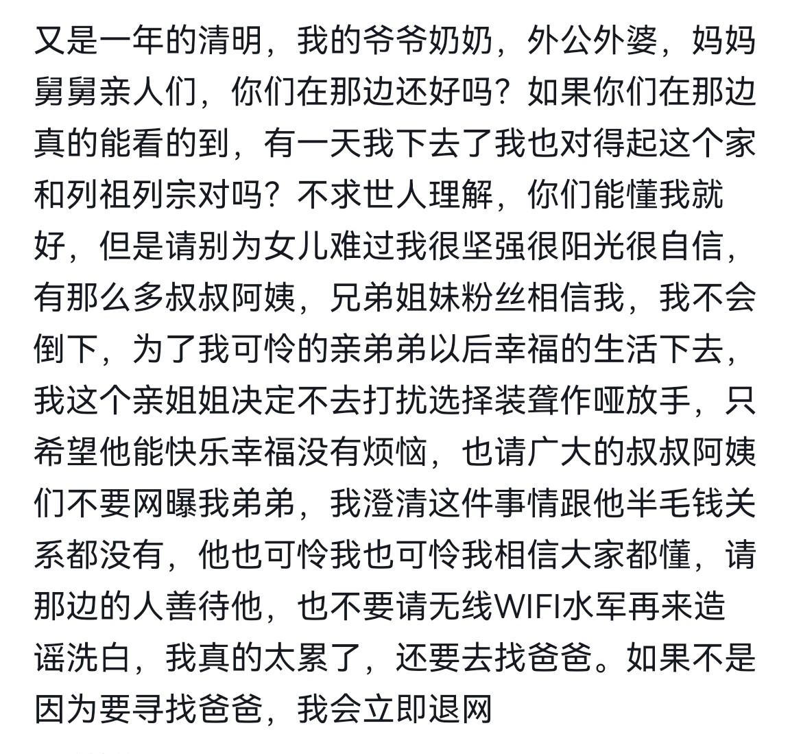 有网友评论,劝姐姐不要搞事情了,好好的和养家跟弟弟相处,不要什么事情都要拿到网上来。