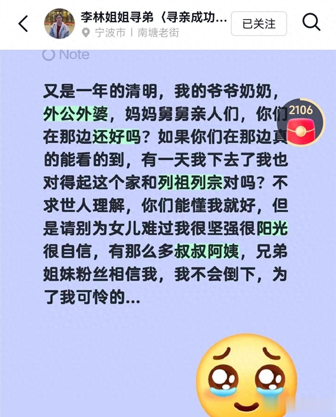 姐姐李林的文字中特意强调了,请那边的人善待自己的弟弟。