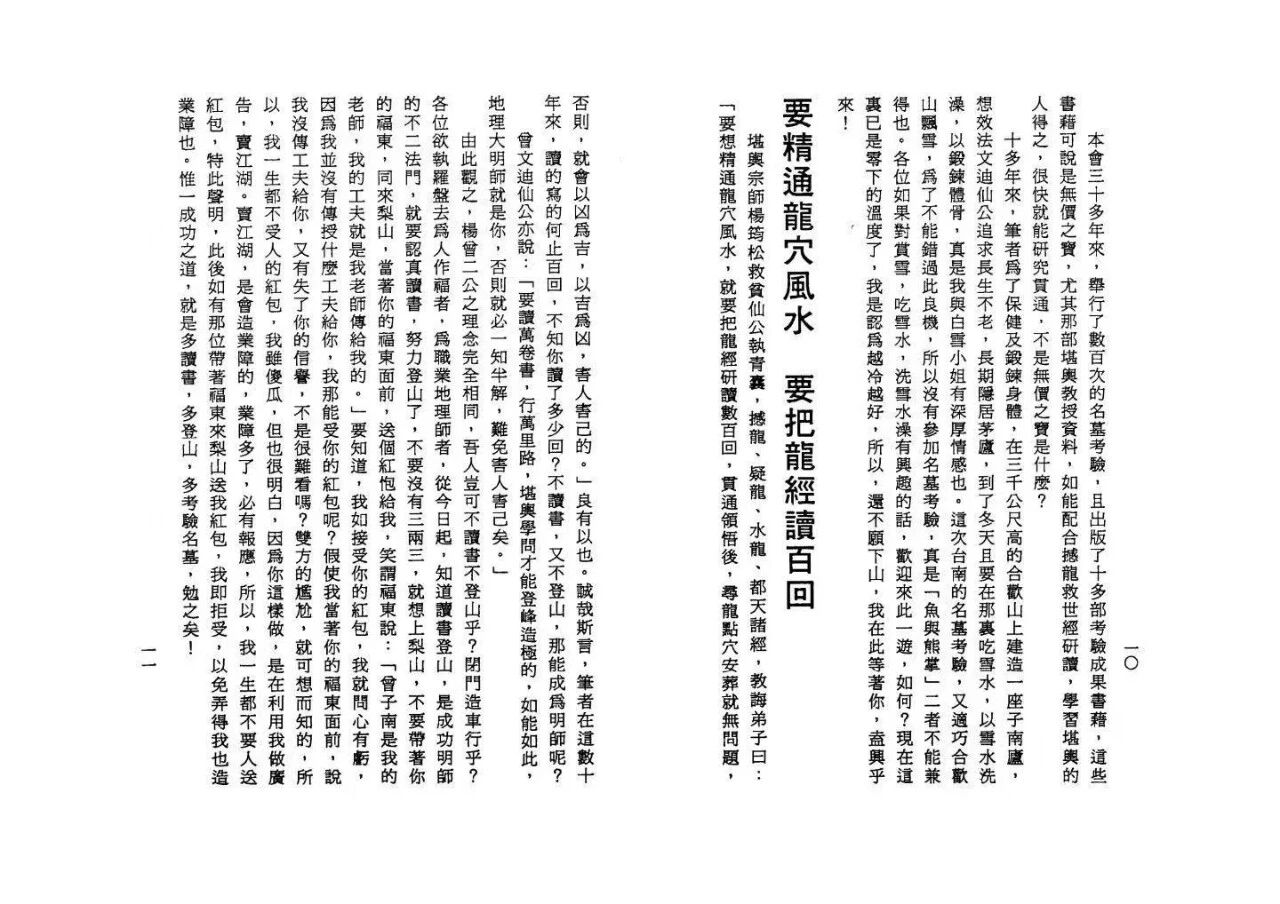 107双面约214页、上下两册的完整形制,内容紧凑实用、价值深厚,完整呈现了曾子南先生的龙穴风水与解煞避凶核心思想。作为极具实用价值的风水典籍,其以传统风水堪舆理论为根基,聚焦生活场景中的风水应用与灾祸规避,既延续了风水文化“天人合一、趋吉避凶”的核心精髓,又通过具体的选址、布局、解煞方法,为读者提供了可直接应用的解决方案。无论是风水爱好者系统研习龙穴风水核心真义,还是普通读者希望通过风水布局改善生活运势、规避灾祸风险,亦或是居家规划者优化住宅与祖坟布局,此书都是不可多得的优质风水典籍。正如书中所言,这是一本“不能不看”的典籍,看完可知所避凶趋吉,错过便可能失去改善运势的机会,《吉利龙穴住宅祖坟生基旺气-可解人零神煞运灾祸》核心风水智慧尽在其中!