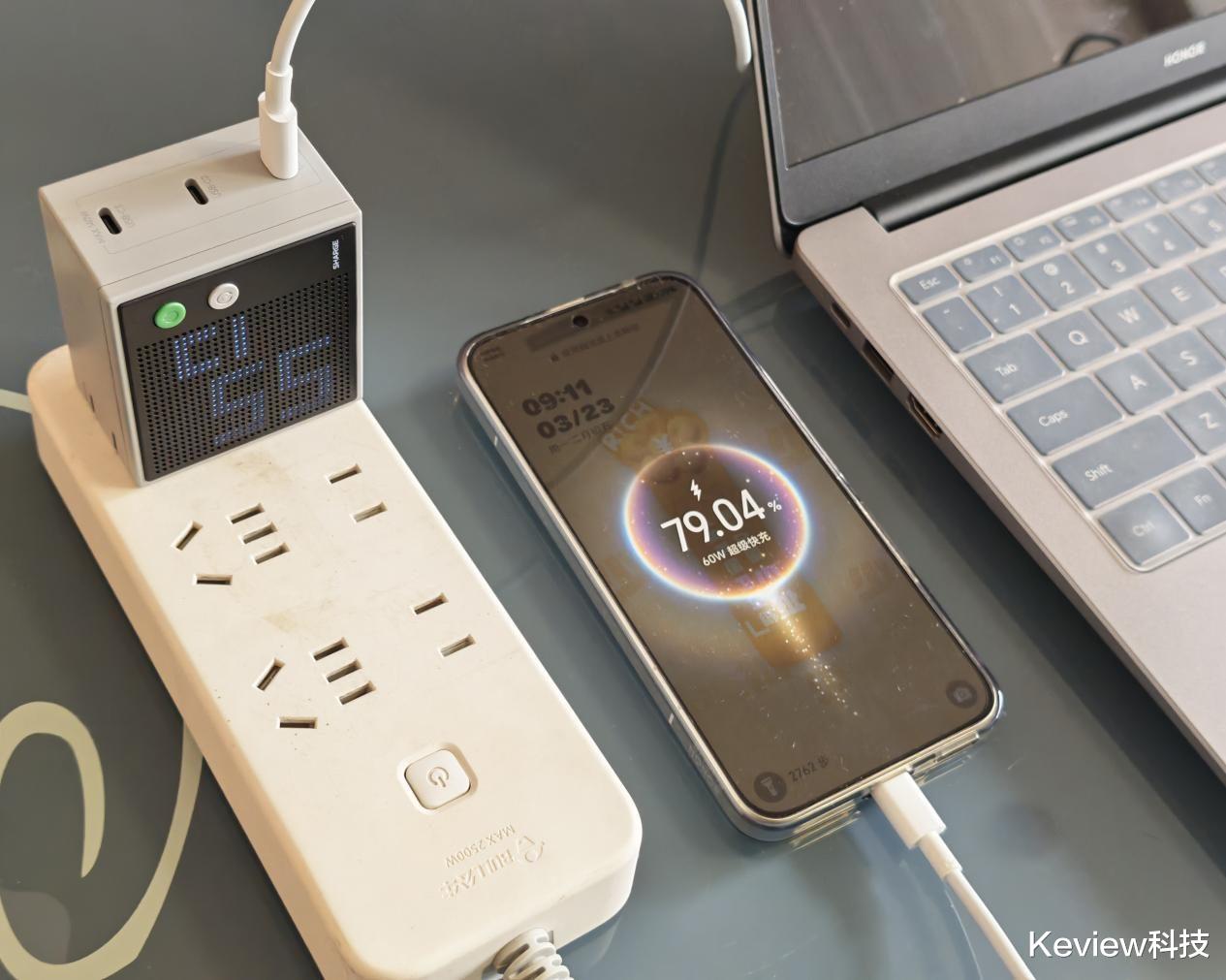 我日常出差除了携带手机外,还携带一款笔记本。在使用闪极点阵屏为我这款笔记本充电时为一款支持 130W 快充的笔记本电脑充电。从剩余电量 20%到充满,用了大约35分钟。在充电过程中,充电器的发热情况控制得非常好,不会出现过热的现象,拥有非常高安全性和稳定性。