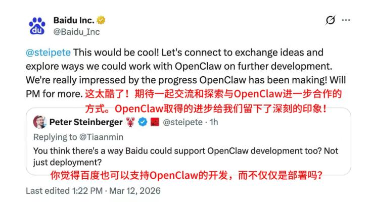 近日,OpenClaw创始人彼得·斯坦伯格在社交平台上的一番喊话,引发了业界的广泛关注。他公开向百度喊出:“有没有可能,百度不仅能支持OpenClaw的部署,还能支持它的开发?”