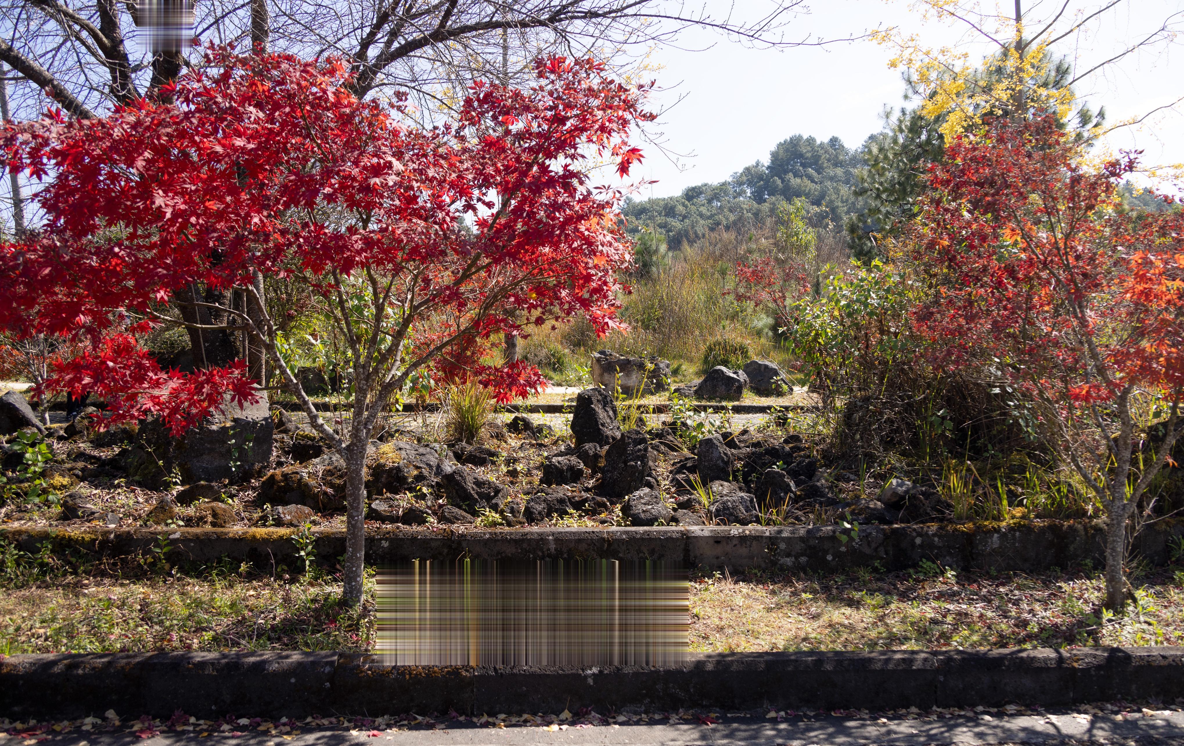 颤巍巍下得山来(晚上才明白是感冒了),再仔细欣赏步道两边的火山石和银杏、三角梅、红枫树,冬日里依然色彩鲜艳。