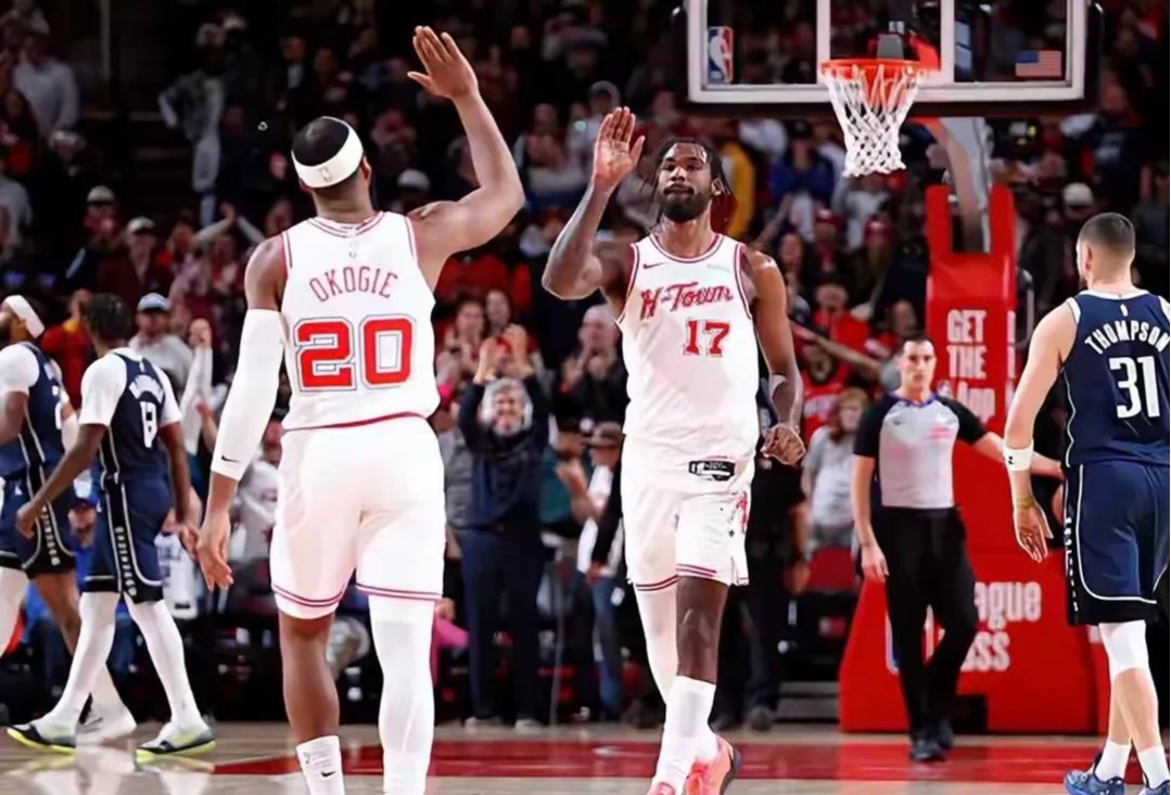 火箭内线以阿尔佩伦·申京+小贾巴里·史密斯为核心:申京场均22.7分10.1篮板7.2助攻,策应与低位进攻在线,能调动骑士双塔;史密斯场均16.8分7.9篮板,协防尚可但顶不动重型内线。火箭靠团队轮转弥补身高差距,内线仍处下风。