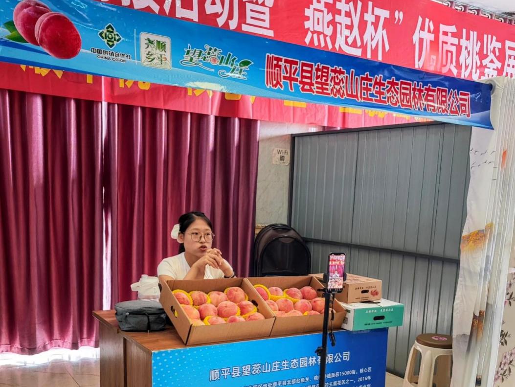 为扩大活动影响力、拓宽销售渠道,活动同步开启了线上直播。镜头下,主播依次详细介绍活动亮点、优质桃品种特性及顺平特色产品优势与特点,全方位展示活动盛况;同时聚焦望蕊山庄当季主打品种——绿化九鲜桃产品,进行直播带货。此次直播累计吸引1000余人在线观看,获得点赞3.8万次,有效提升了顺平农产品的品牌知名度。