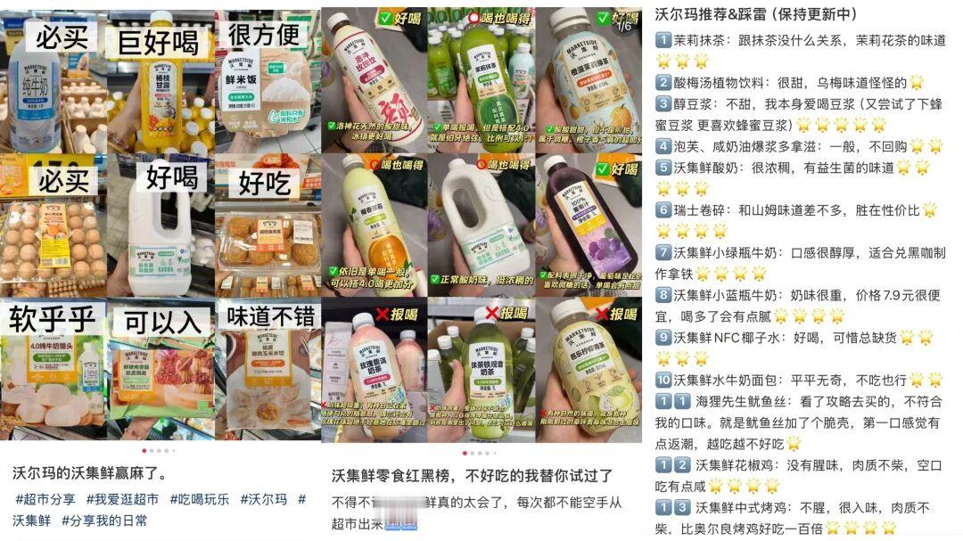 「沃集鲜」的商品在小红书上已经火出了攻略。必买品、好吃品、好喝品、闭眼入款......每个网友都有自己心水的沃集鲜好物。