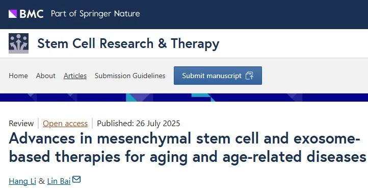 2025年7月26日,中国医学科学院北京协和医学院实验动物研究所团队发表在《Stem Cell Research & Therapy》的文章,阐述了间充质干细胞(MSCs)及其外泌体(MSC-Exos)延缓衰老、治疗老年病的价值,深入阐明了机制并为临床应用提供了依据。