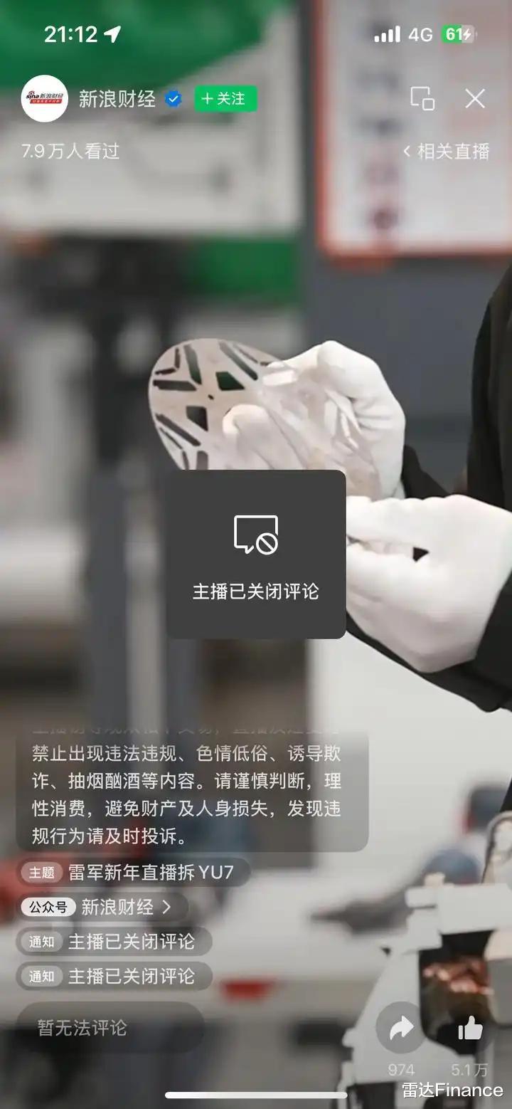 雷军直播拆车:“希望大家说公道话”