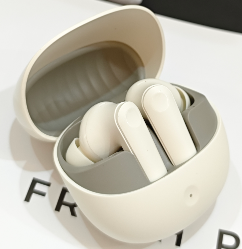 外观与做工:这款走简约风,充电盒是磨砂质感的,拿在手里不沾指纹,单耳重量只有5g,轻飘飘的,做工也挺扎实,没有毛边啥的,颜值不夸张,上学上班戴都合适。