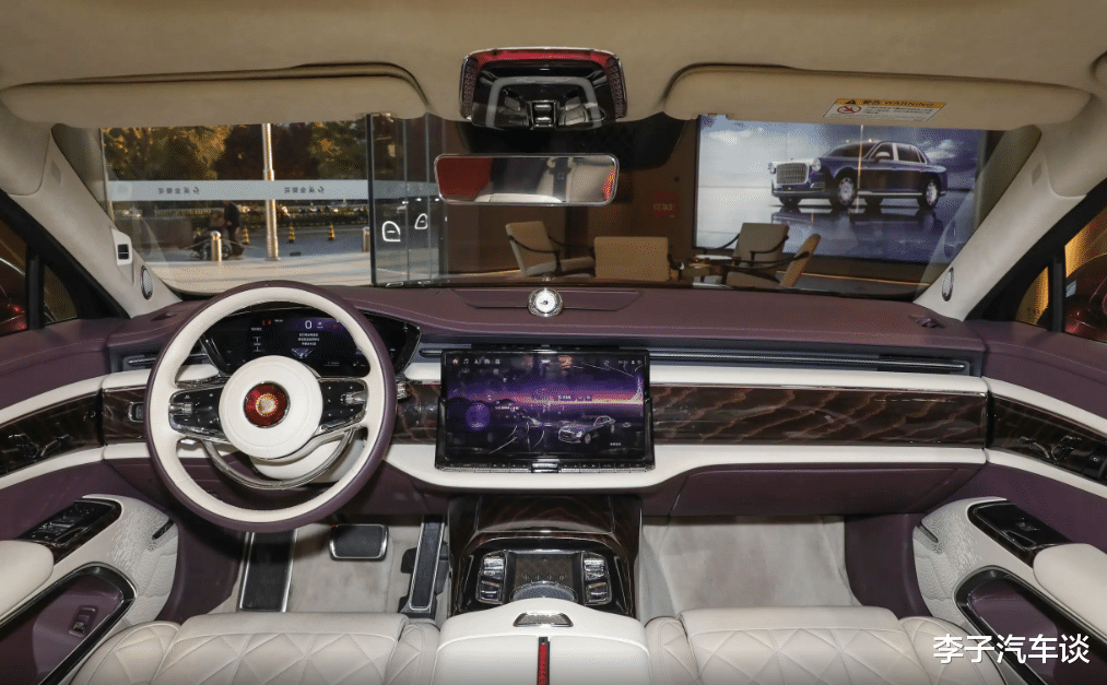 打开车门来到车内,红旗国雅在内饰设计上的主题也是以豪华风格为主,在方向盘上,该车采用了双辐式的设计,而且整个车内的配色也是双拼色的设计,配合大量皮质材料的包裹,在高级质感上有着不俗的表现。在这些方面倒是符合一台大型车该有的水准。此外,在中控台上,该车还采用了一块大尺寸的悬浮式屏幕,保障了其车内的科技质感,而且在中控屏幕的下方,则是功能区域,在这块区域当中,该车保留了很多实体按键,方便我们进行日常的操控。