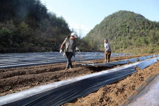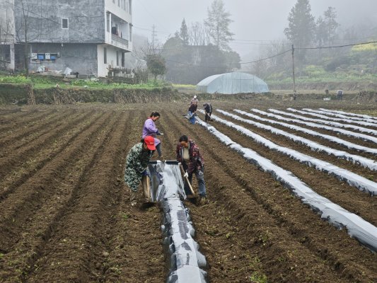在湖北省咸丰县坪坝营镇,连片烟田铺展成绿色的画卷,小型起垄机在田间穿梭轰鸣,烟农们趁着雨歇抢抓农时,有条不紊地开展覆膜、压膜作业;咸丰县烟草专卖局(营销部)的烟叶技术员深入田间地头,手把手指导烟农做好墒情监测、科学施肥和覆膜管理,每一处都涌动着抢抓农时、奋力春耕的热潮,勾勒出山区烟业高质量发展的生动图景。