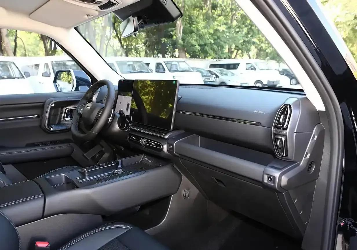 在内饰上整个座舱造型虽然属于硬汉风格,但随处可见的软包材质,还比较有质感,特别是14.6英寸的中控屏幕紧跟时代,内置的双区域语音识别控制系统可以用语音控制多媒体、车窗和导航,也具备与新能源车类似的连续语音识别与可见即可说能力,在众多基础配置当中, 最让我眼前一亮的是标配的HUD,有了这个功能可以让更多常用的信息显示在目之所及的眼前,尤其是手机远程控制最让人喜欢,差不多常用的功能都能通过手机提前开启,包括车窗、空调、方向盘加热、座椅加热通风,这些功能出现在一台10多的SUV上也是属实有诚意了。