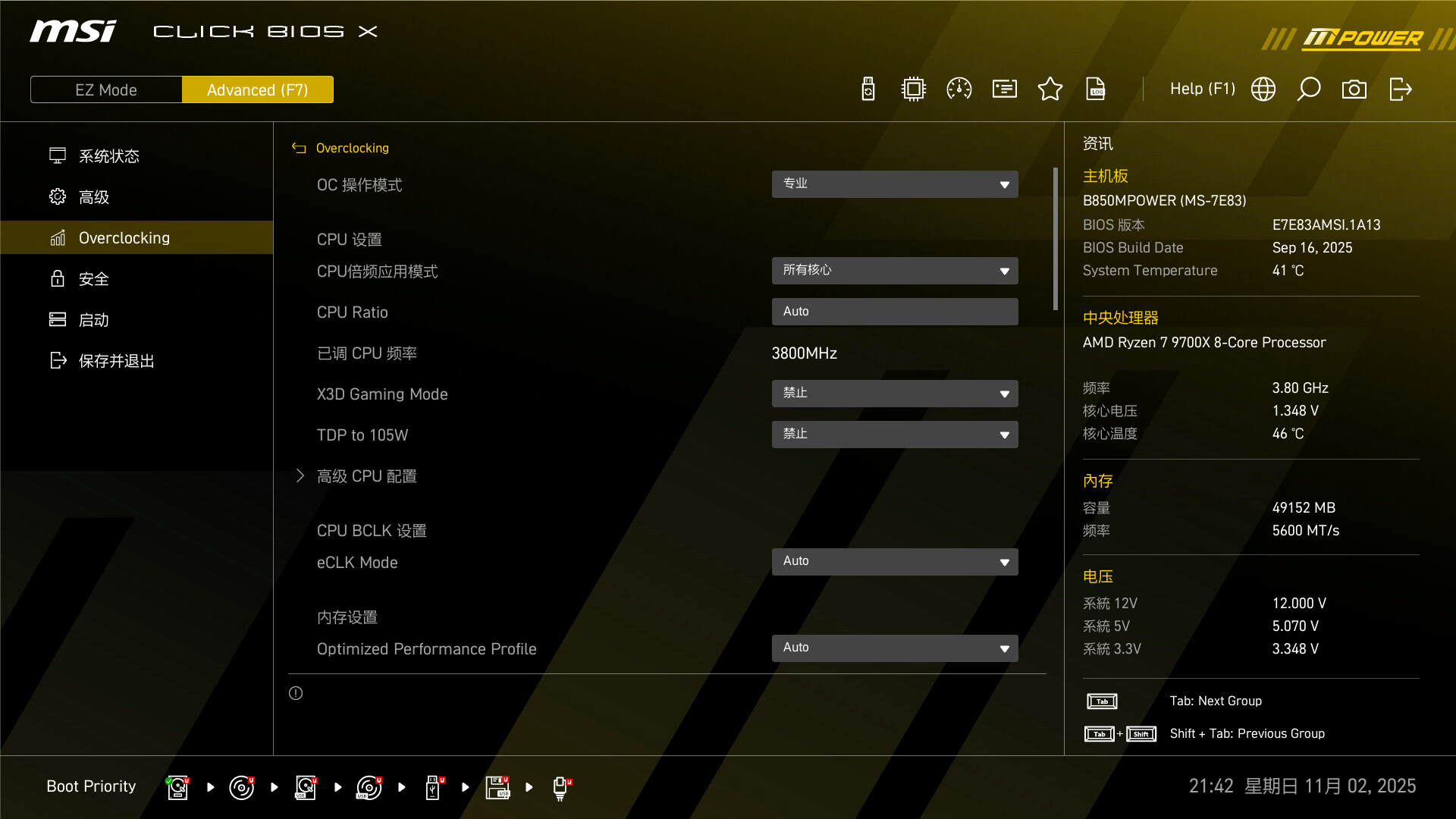 综上所述,微星B850MPOWER主板无疑是一款集性能、扩展性与性价比于一身的优质产品。内存超频上,在AMD平台轻松应对高频需求,且操作轻松,达到8000MT/s的速率已非常轻松,如果你对超频有研究,且内存品质优秀,可以借助B850MPOWER主板,成功将内存频率突破至8000MT/s以上。就个人使用体验而言,与其他B850主板相比,B850MPOWER在推动内存达到8000MT/s这一关卡时显得更为游刃有余,操作起来轻松自如。