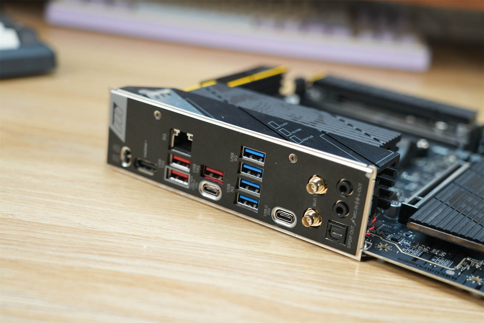 在IO模块设计上,微星B850MPOWER配备1个HDMI 2.1视频输出接口;3个红色USB接口,附近TYPE-C接口支持USB3.2 Gen2,速率达10Gbps,4个蓝色USB接口为USB 3.2 Gen 1,速率5Gbps;最下方TYPE-C接口支持USB3.2 Gen2X2,速率20Gbps。面板上方新增BIOS回写键与CMOS清除键,下方设有HD音频和光纤输出接口,整体配置十分出色。