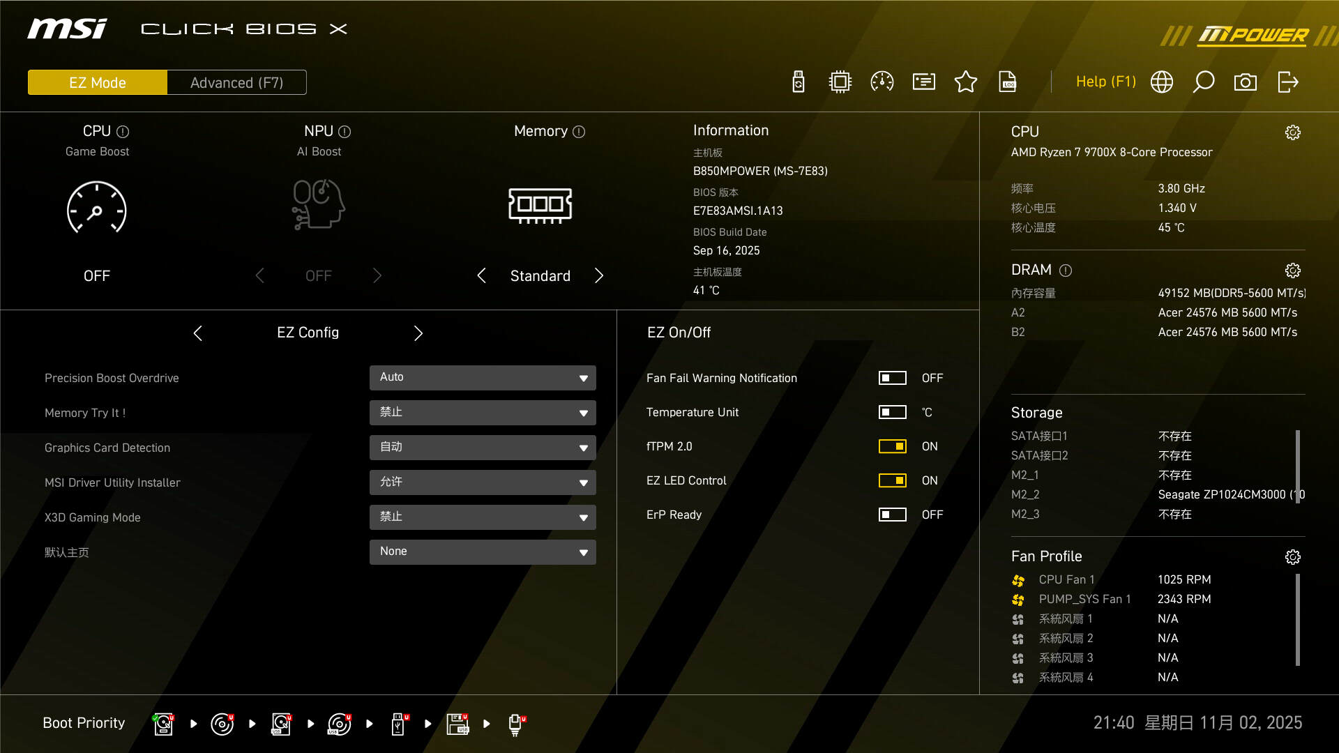 微星B850MPOWER作为主打超频的主板,其EZ Dashboard面板集成电源、重启、清CMOS键及LED调试灯,设计精良、工艺考究。通过延长线与主板相连,方便用户后期进行超频调试。