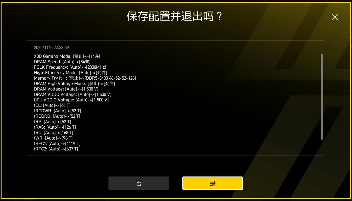 打开XMP2,内存频率为8000MHz,时序38-48-48-72 CR1,