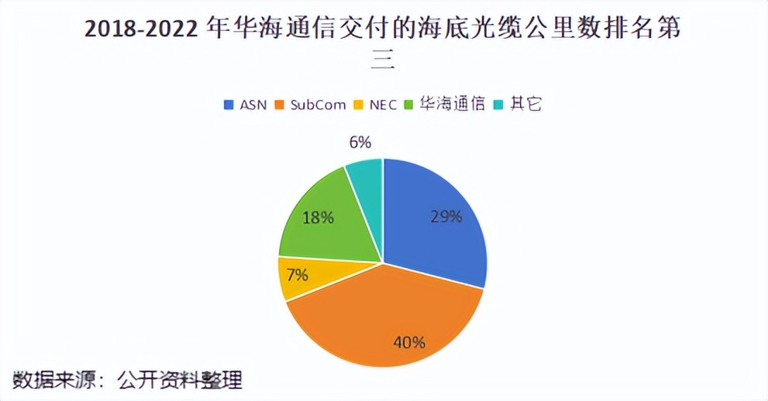 在2018-2022年全球交付的106个海缆系统中,按长度计算,华海通信占据了18%的份额,位居全球第三。