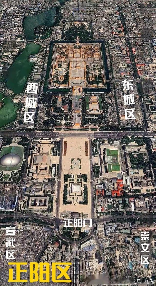 但是城镇规划君何方洪认为,2010年北京市区划调整时,已经把崇文区和宣武区撤销合并到了东城区和西城区,所以现在的正阳门并不是四区交汇点了,而是东西城区的分界处。