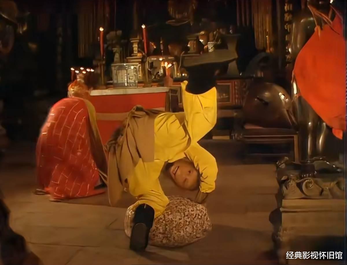 这时看到师父拿着蒲团要去拜佛,他也照样子做起来,只是这样恭敬的拜佛,怎么能约束得了他呢,于是,一抬腿间,看到了大梁旁边的钟