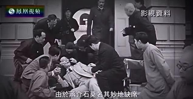 枪声停止以后,蒋介石才从礼堂内部的休息室内跑出来,看到倒地的汪精卫他还上前搀扶。