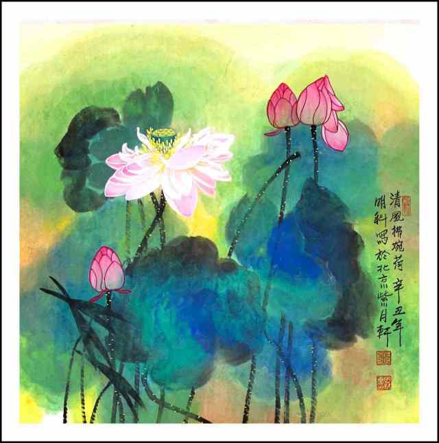 Mr. Wang Mingke's paintings cover a wide range of themes and excel in both meticulous and freehand styles. His unique color ink paintings, featuring a combination of meticulous and freehand techniques on raw rice paper, incorporate splashes of ink and color, blending realism and abstraction, and integrating Chinese and Western painting styles, exuding a decorative charm. His particularly distinctive color ink paintings of lotus flowers, executed in both meticulous and freehand styles, are groundbreaking. This unique and refreshing style of color ink painting has received high praise from dozens of senior artists in China: "The painter, Mr. Wang Mingke, excels in portraying figures, flowers, and birds, especially in his ability to execute both meticulous and freehand styles with ease, which is particularly commendable", "It's refreshing", "It breaks away from conventional styles", "It's novel and beautiful", "It's a wonderful work in the art world", "Not only are the varieties novel, but the techniques are also innovative. It's not sticking to old rules and being monotonous. It truly brings forth the new from the old, combining tradition with the spirit of the times, making it intriguing".