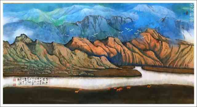 陜西甘泉大峡谷 工写彩墨 136x68cm 2020年