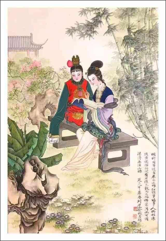红楼梦故事 工筆人物 1979年 恩师俞致貞 刘力上题字