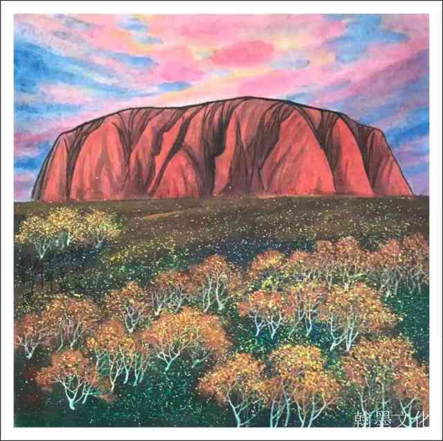 澳洲艾尔斯岩 生宣彩墨 68X68cm 2014年