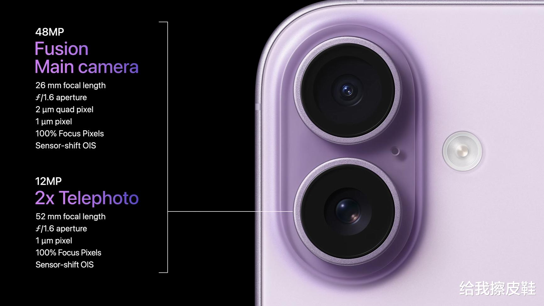 相机系统迎来全面革新,后置采用双 4800 万像素 “融合” 摄像系统,以垂直药丸状排列呈现。主摄拥有 26mm 焦距与 F1.6 大光圈,配备传感器位移式光学防抖,更实现 “一镜两用”—— 既承担主摄职责,又可切换为 2 倍光学变焦长焦镜头(52mm 焦距),通过独立图像处理流程保障两种模式的成像质量。超广角镜头同样达到 4800 万像素,分辨率是前代的 4 倍,搭配 13mm 焦距与 F2.2 光圈,还支持 1200 万像素微距拍摄。前置摄像头升级至 1800 万像素,视野进一步拓宽,支持无需横屏即可拍摄风景与人像照片;AI 驱动的 Center Stage 功能可自动扩展视野并实现横竖屏智能切换,完美适配多人自拍场景,同时支持 4K HDR 超稳视频录制及前后双摄同步录制功能。