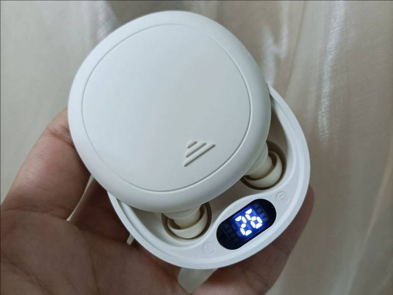 wedoking在睡眠耳机领域走的是深度细分路线,产品思路围绕人体工学展开,同时加入了一些偏向夜间使用的智能设计,整体目标就是提升佩戴舒适度和睡眠场景下的便利性。耳机在结构上明显针对侧睡做过优化,机身做得比较小巧,戴进耳朵后负重感不明显,即便长时间侧躺,也不太容易出现顶耳或发闷的不适感。入耳角度比较贴合耳道,稳定性表现尚可,夜里翻身时耳机基本能保持在位。耳机配备多种尺寸的硅胶耳帽,其中也包含偏软的空气海绵材质,可根据耳型自行调整,实际降噪和贴合感会有所不同。连接方面使用蓝牙5.3协议,实际体验中连接稳定性表现正常,没有明显掉线问题。