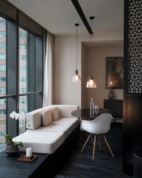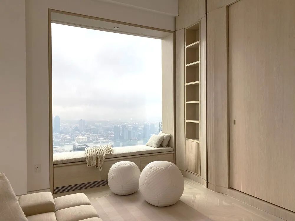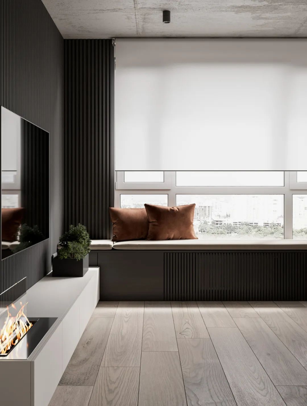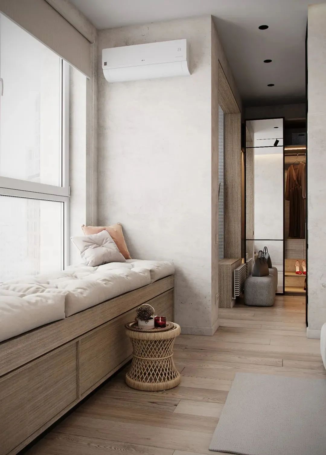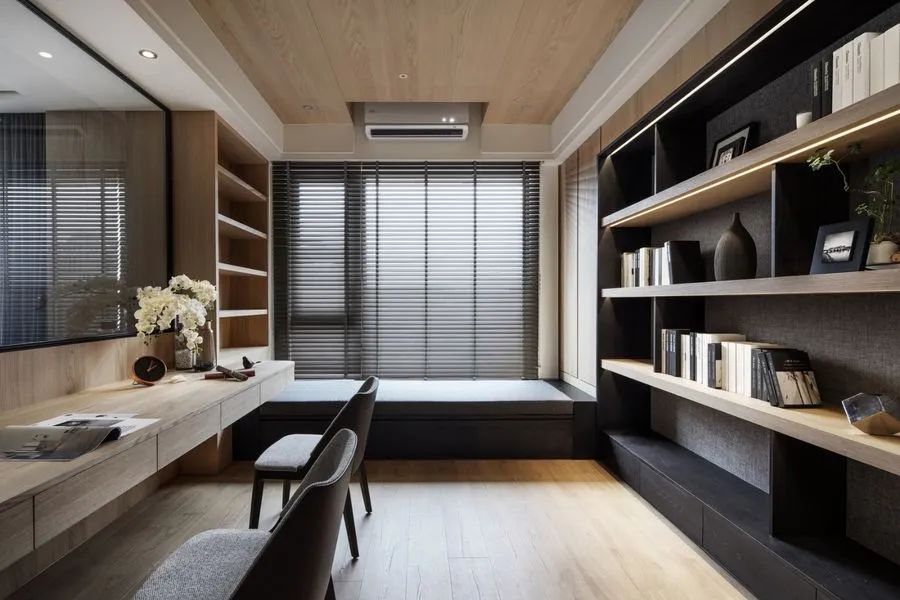 飘窗的设计既有利于进行大面积的玻璃采光,又保留了宽敞的窗台,使得室内空间在视觉上得以延伸。现在业主将卧室或客厅的凸窗变成了更实用的空间,例如用于额外存储的橱柜、平台床,书桌甚至梳妆台。