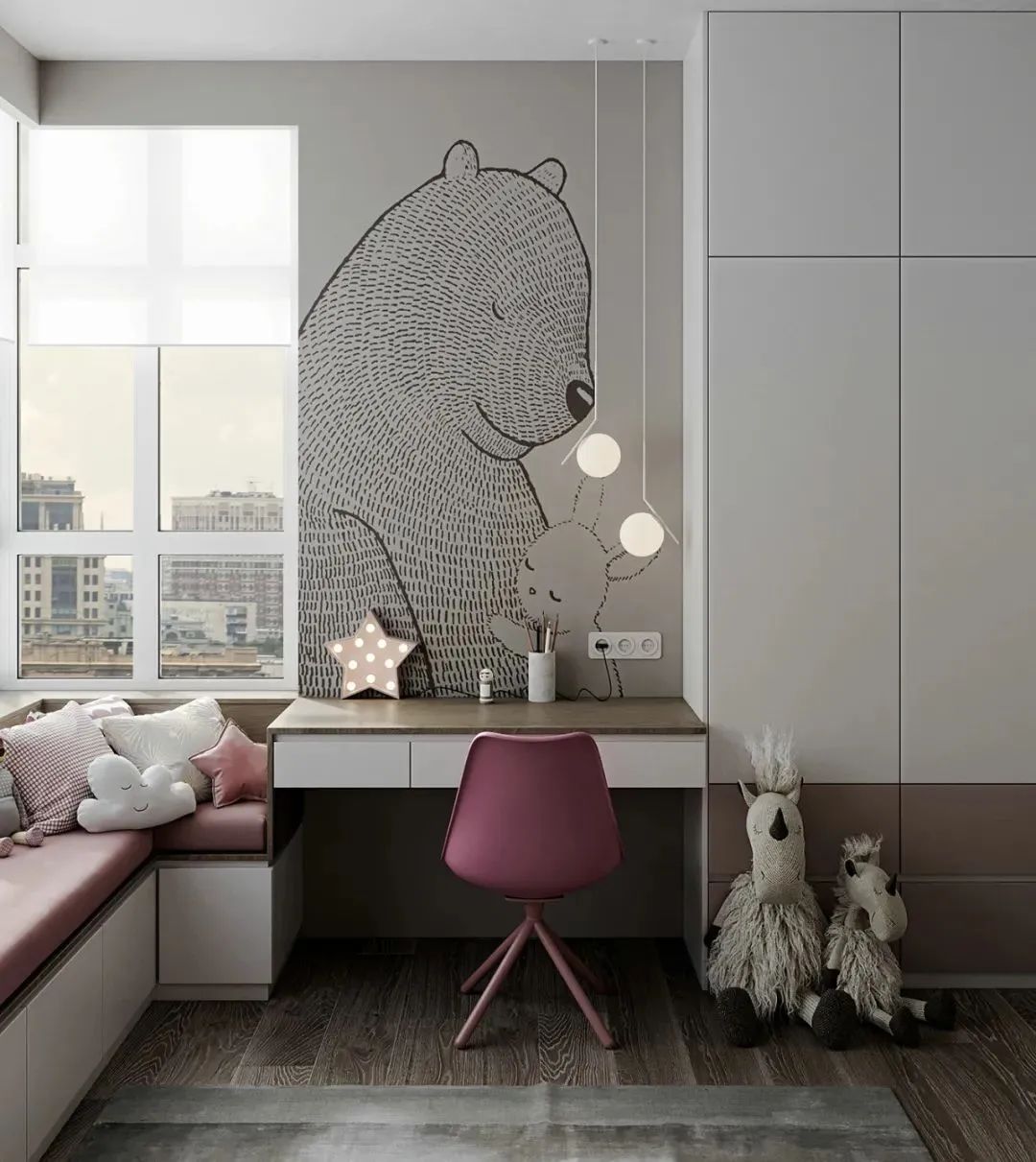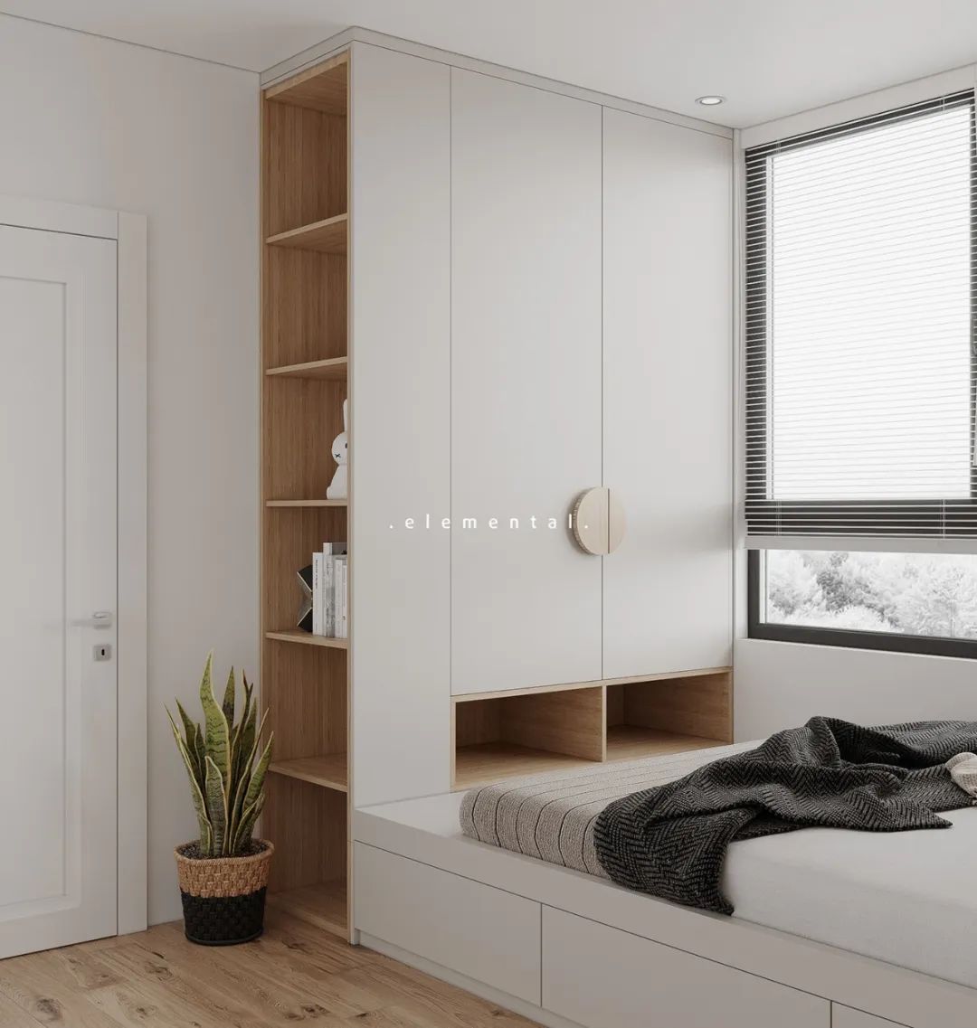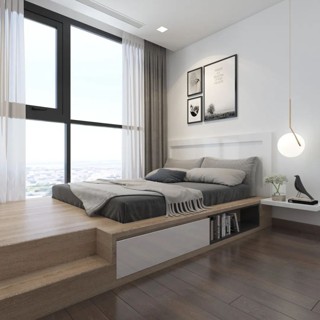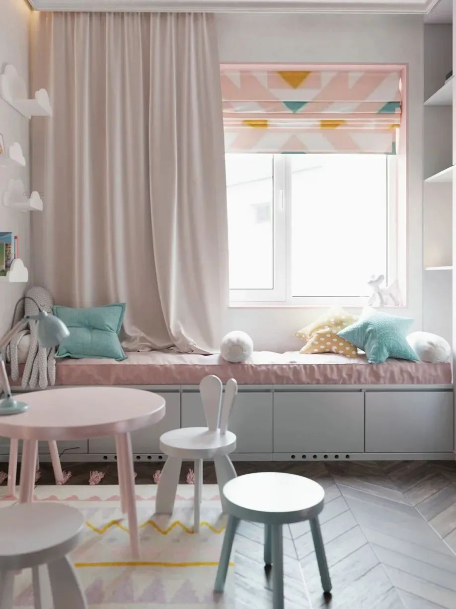 飘窗的设计既有利于进行大面积的玻璃采光,又保留了宽敞的窗台,使得室内空间在视觉上得以延伸。现在业主将卧室或客厅的凸窗变成了更实用的空间,例如用于额外存储的橱柜、平台床,书桌甚至梳妆台。