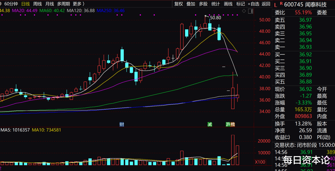 资本市场的反应立竿见影。10月10日开盘,闻泰科技股价应声跌停,直到10月15日经历两个跌停板后才勉强止跌,较事件前市值蒸发超百亿。东方财富股吧里,投资者的焦虑与分歧交织:有部分网友哀叹“五年布局一朝梦碎”,也有技术派分析 “216 亿商誉减值风险才是真凶”,更有乐观者期待“国家层面介入破局”。