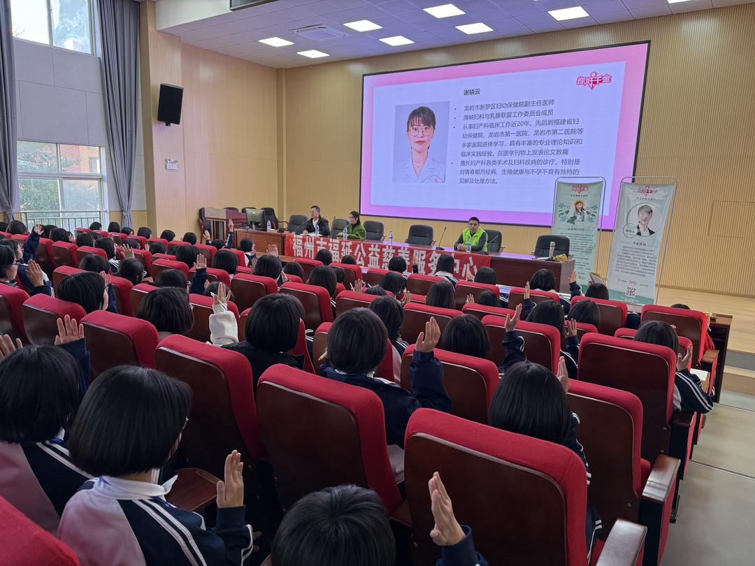 本次讲座特邀新罗区妇幼保健院谢晓云副主任担任主讲人,围绕“大学生恋爱及性心理”主题展开授课,学校校长助理游龙成老师出席活动,200余名学生到场聆听学习。讲座中,谢晓云副主任结合青春期学生的成长特点,从青春期情感变化、恋爱观念建立、健康性心理培养等方面切入,通过真实生动的案例分析与互动问答,引导学生积极思考、踊跃发言,让同学们在轻松的氛围中深化对恋爱与性心理的认知。