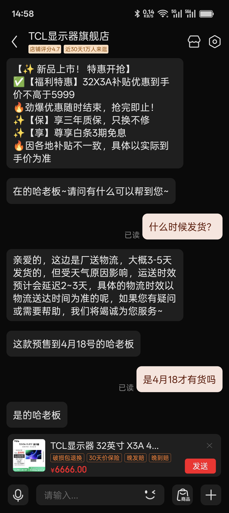 当然好东西肯定都是靠抢的,这款X3A现在已经断货了,看小黑盒社区说可能每周会放一些量出来,但不知道具体的出货时间...官方旗舰店说得4月18号才能发货,还得先预定,有没有懂的老哥帮忙看看,有什么渠道可以提前搞到吗?真的想要啊,谢谢~