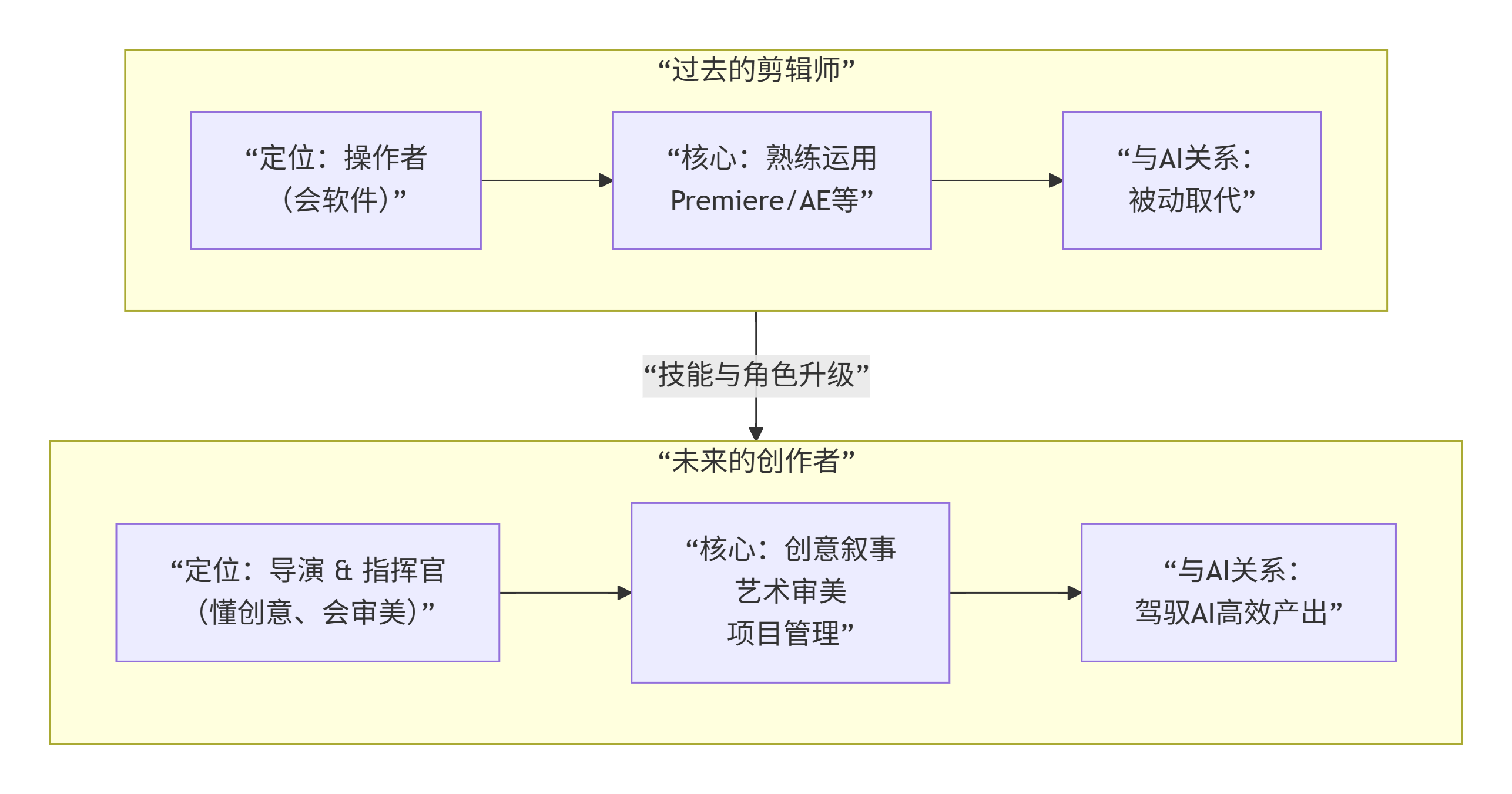 核心逻辑已经从“自己动手做所有事”,转变为“让AI帮你实现想法”。这要求你的角色必须升级,下图清晰地展示了这种转变: