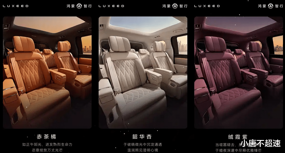 3月31日,智界品牌公布了旗下中大型MPV——智界V9的内饰配色方案。新车提供绒霞紫、韶华杏、赤茶橘三种颜色供选择,三款配色的灵感分别取自破晓微光、正午阳光和傍晚暮色,对应一日三时的光影变化。