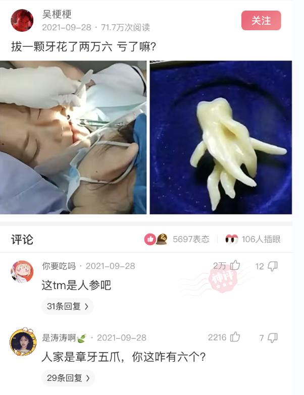 看着都替小哥感觉疼,哈哈哈哈你问我什么是巾帼不让须眉?这就是巾帼不让须眉花两万六拔了一颗牙,是不是被坑了?就喜欢评论区没