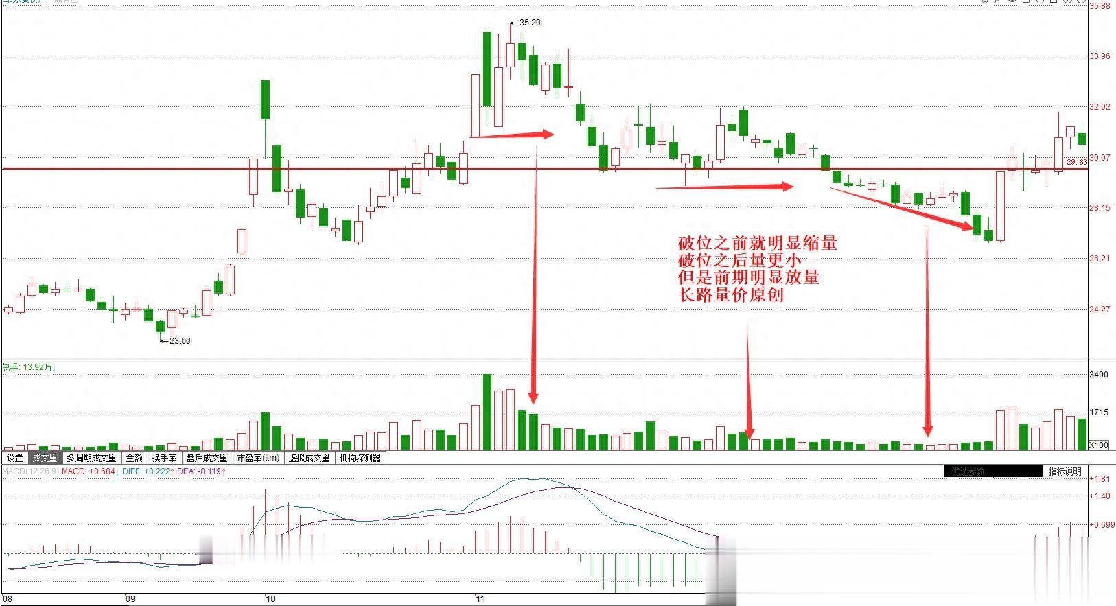 为什么会这样呢?背后的原理是什么呢?大家记住,只要是你股价不是大涨几倍十几倍的那种高位,只要是前期没有暴涨大涨过的位置,在震荡之后出现了无量空跌,那么就说明这种下跌是没有人出来止损的。