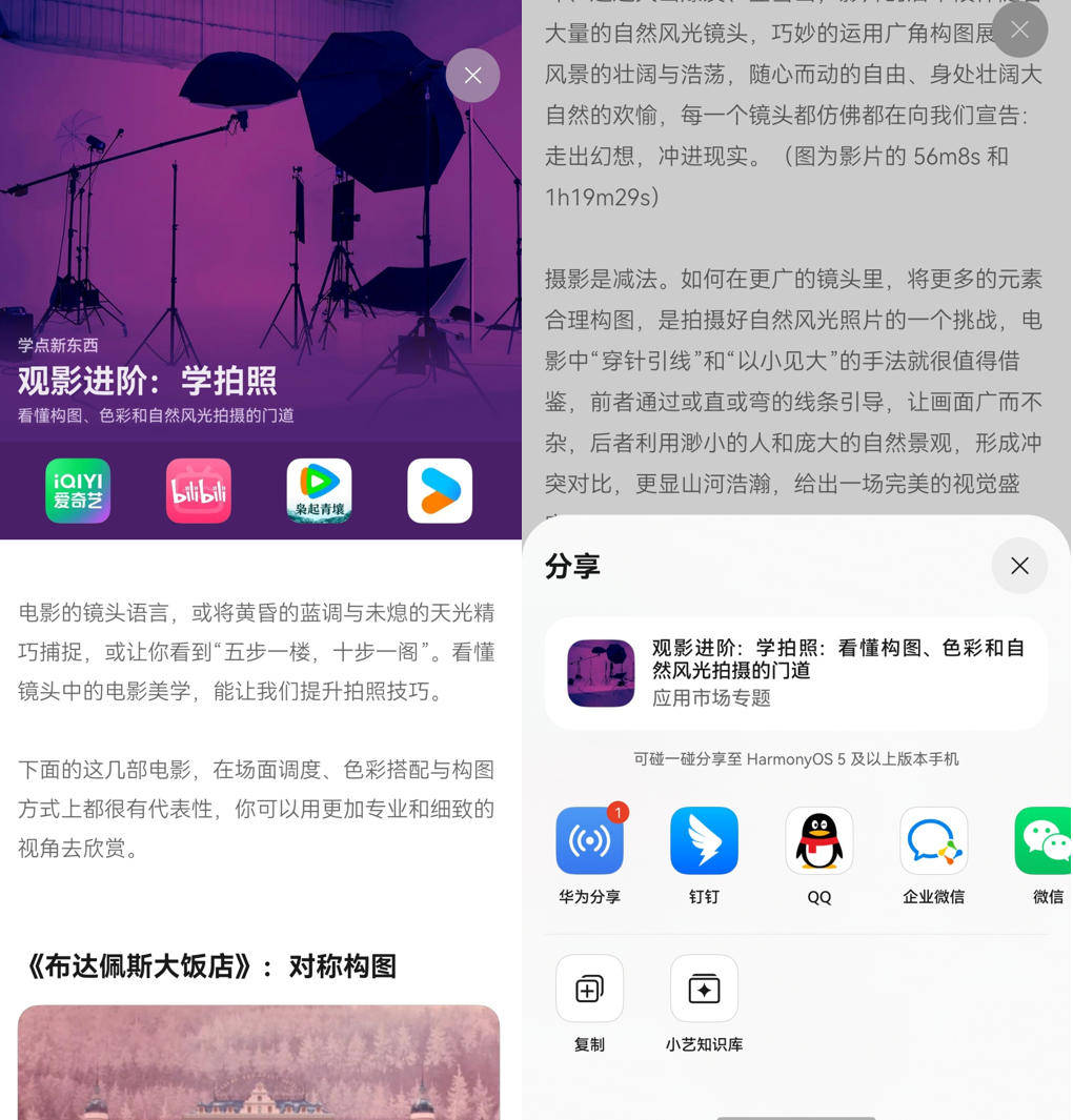 更惊喜的是,现在华为应用市场还上新了Story页面分享功能,看到好玩、好用的专题应用,可以直接下滑到专题页面底部,就能和朋友一起解锁。上周朋友喊我出去学摄影,但不知道怎么构图,我直接找到“观影进阶:学拍照”专题,和小伙伴提前用这些App学习镜头语言,分分钟提升构图方式和色彩搭配技能。此外还有声音猎人、带毛孩子去远方等专题,都能给我们的生活带来更多灵感!