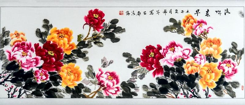 吉祥、富贵、美好,品高格正,是洛阳牡丹文创艺术的卓越代表,更是代表河南洛阳特色文化的一张靓丽名片,一朵朵牡丹花,一张张国色天香的娇美容貌,富丽端庄、艳而不俗、被永远定格在宣纸上,清雅、优美、别致的牡丹画,留住了美丽的时刻,留住了醉人的风采, 感受国画牡丹的魅力,把我们也融入牡丹花海中, 让洛阳牡丹文化走向全国,走向世界。
