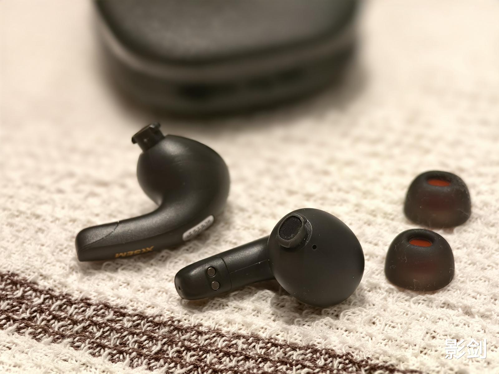 耳机采用浅入耳式设计,这个跟AirPods有点点相似,或者说是借鉴了它的设计。单只耳机重量仅约 4g,拿在手中几乎感觉不到重量。耳机的腔体线条流畅自然,贴合耳道部分的设计符合人体工学,能够完美地贴合我的耳道,给人一种舒适且稳固的佩戴感受。它还贴心地配备了三套不同尺寸的备用耳帽,材质柔软亲肤,我可以根据自己耳道的大小选择最合适的耳帽,进一步提升佩戴的舒适度。