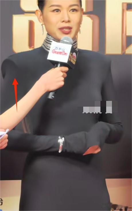 肩膀上的设计也非常的奇怪,衣服比胡杏儿的肩膀还长,显得胡杏儿又宽又壮。