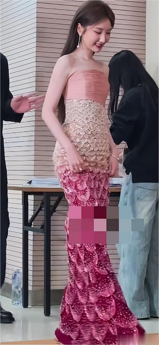 白鹿这次的造型更是让人难以理解,好好的一条裙子上面整了个贝壳。