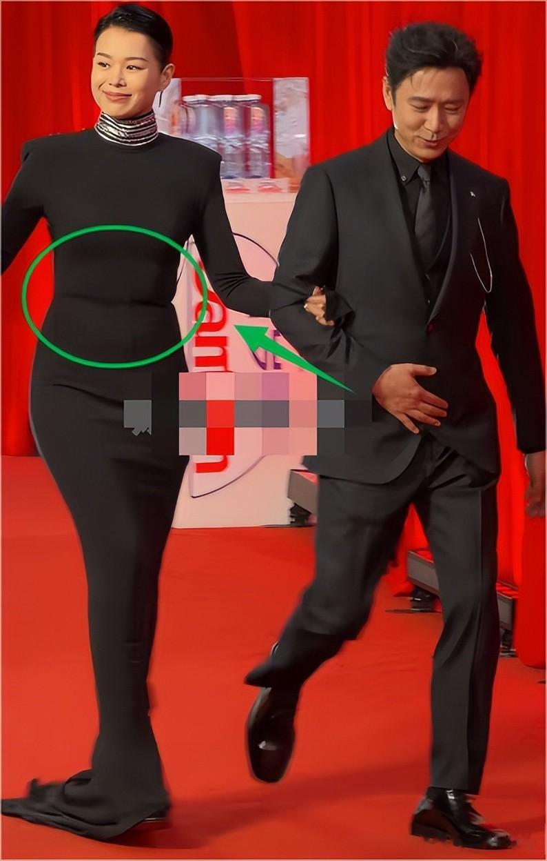 在走红毯的时候,胡杏儿腰上的肉都被勒成了两层,看着非常的奇怪。