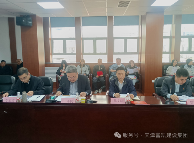 5、4月10日,津南区富凯集团召开2026年度工作会议。集团党支部书记、董事长田泽民代表集团领导班子作年度工作报告,全面回顾2025年工作,查找不足、总结经验,部署新一年重点任务。集团党支部副书记、总经理孙文瑞主持会议,并就落实本次会议精神提出要求。会上,对集团经营管理工作先进集体和管理工作先进个人进行了表彰。